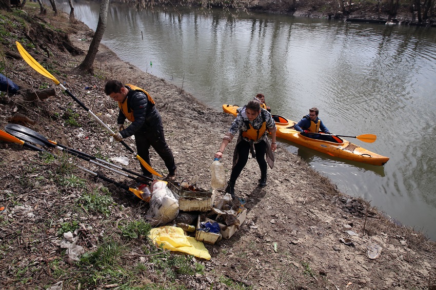 Tunca Nehri kenarına gelen kulüp üyesi yaklaşık 20 kişi, araçlarla getirdikleri kanoları suya indirdi. Yaklaşık 2 kilometrelik alanda temizlik çalışması yapan sporcular topladıkları çöpleri kano yardımıyla kıyıya çıkardı.