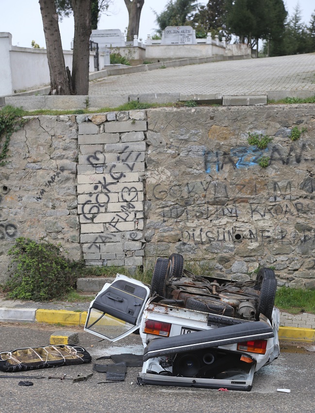 Alınan bilgiye göre, Anadolu Kavağı Mahallesi'nde, A.G (29) yönetimindeki 35 MAR 61 plakalı otomobil, sürücünün direksiyon hakimiyetini kaybetmesi sonucu, Anadolu Kavağı Mezarlığının yaklaşık 4 metrelik duvarından Yoros Kalesi Yolu'na devrildi.