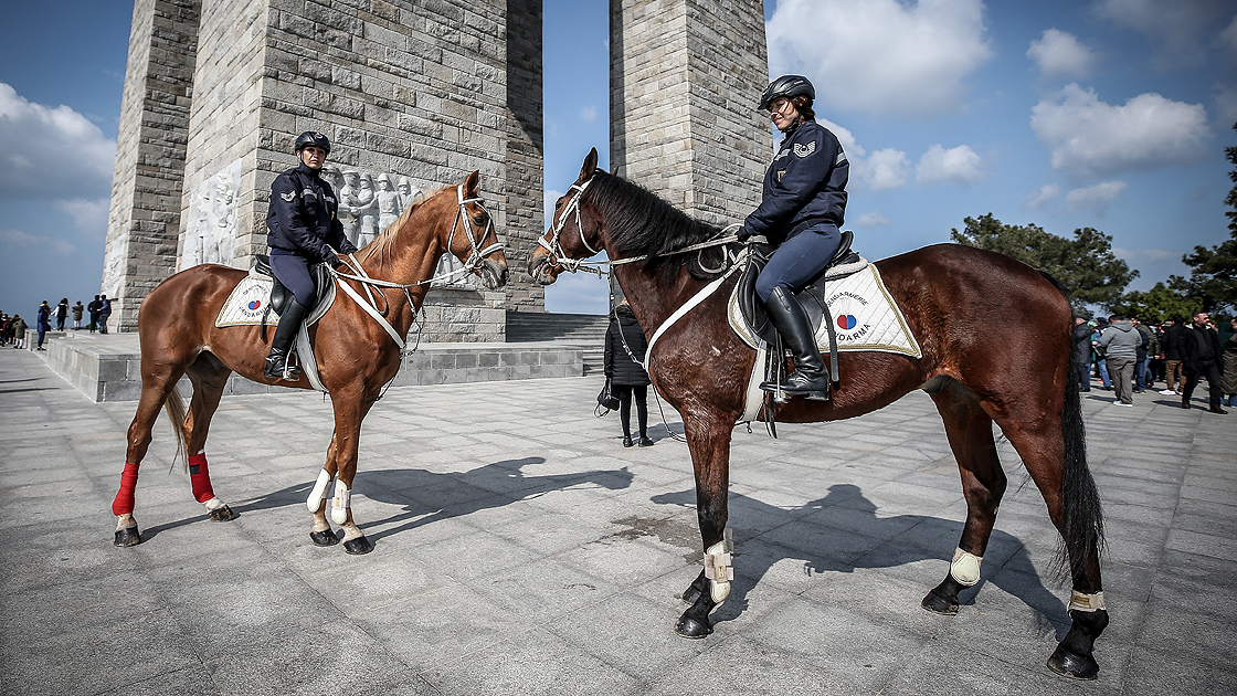 Törenlere katılacak devlet büyüklerini karşılayacak Çanakkale Jandarma Komutanlığının atlı timleri ile Nevşehir Jandarma At ve Köpek Eğitim Merkezinden (JAKEM) atlar da son provalarını yaptı.