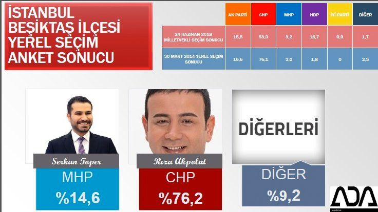 Ada Araştırmanın yaptığı ankete göre istanbul ilçelerinde seçim anket sonuçları