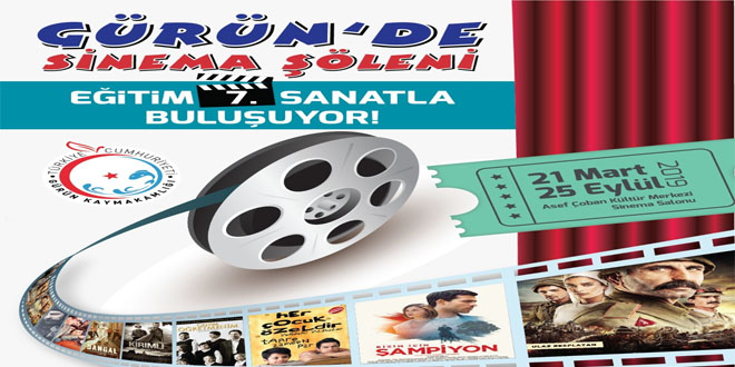 Kültür Bakanlığı Sinema Genel Müdürlüğünün destekleriyle Gürün Kaymakamlığı ve İlçe Milli Eğitim Müdürlüğü tarafından 2023 Eğitim Vizyonuna uygun olarak öğrenci, öğretmen, veli ve ilçe halkının eğitime ve sanatsal faaliyetlere ilgisini artırmak amacıyla Eğitim 7. Sanatla Buluşuyor sloganıyla Sinema Şöleni düzenlendi