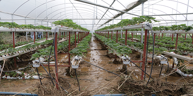 Yaklaşık 2 metre yükselen sular kapalı kümes içerisinde bulunan yaklaşık 600 tavuğu telef etti, seralarda bulunan, çilek, domates, biber ve salatalık zarar gördü.