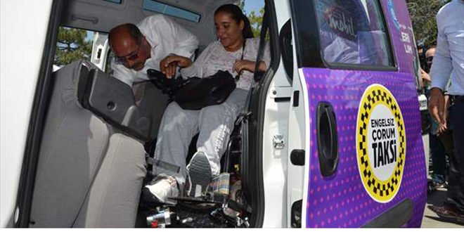 Çorum'da, engellilerin şehir içi ulaşımını sağlamak amacıyla "mor taksi" uygulaması başladı.