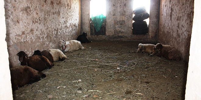 Sit alanı ilan edilmesine rağmen asırlık Güzelşeyh kasrının içerisinde mevsimlik işçiler tarafından hayvanlar için ahır yapıldığı görüldü.