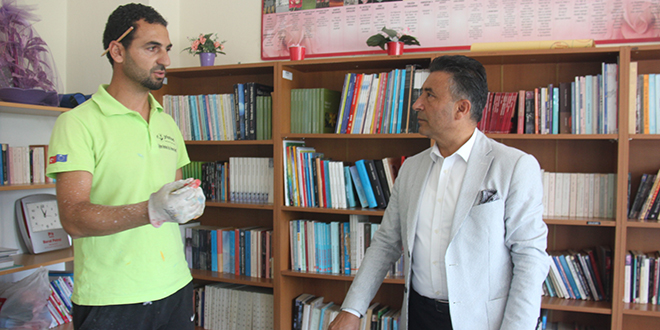 Bingöl'de bir köy okuluna müdür olarak atanan Saim Çakar, tatilini bırakıp geldiği okulda bir işçi gibi çalışarak hem boya badana hem de dekorasyon çalışması yaparak örnek oluyor