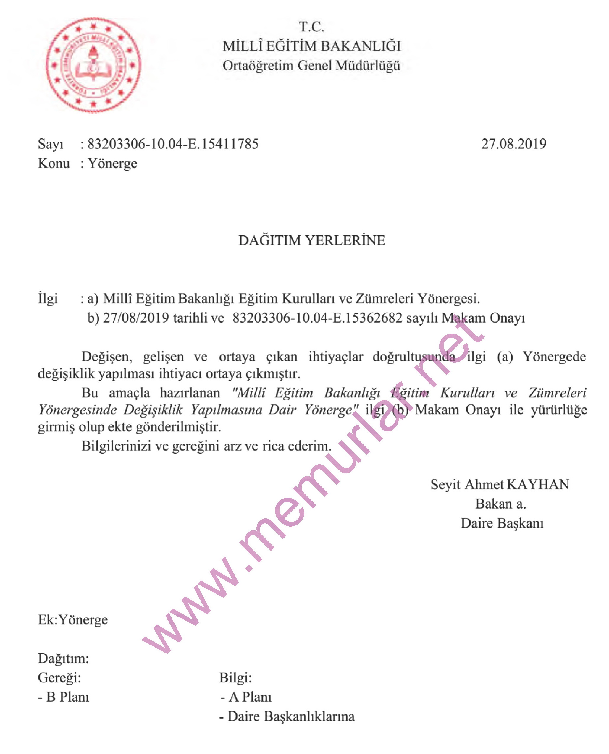 Milli Eğitim Bakanlığı, Eğitim Kurulları Ve Zümreleri Yönergesinde 27 Ağustos 2019 tarihi itibariyle bazı değişiklikler yaptı. İşte değişikliklerin işlendiği yönergenin yeni hali
