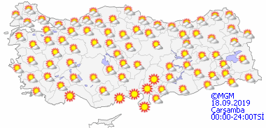 Meteoroloji Genel Müdürlüğü tarafından yapılan son değerlendirmelere göre; Ülkemizin kuzey ve iç kesimlerinin parçalı ve çok bulutlu, Doğu Akdeniz, İç Anadolu'nun doğusu, Orta ve Doğu Karadeniz, Kocaeli, Sakarya, Düzce, Sinop, Malatya, Erzincan, Erzurum, Kars ve Ardahan çevreleri ile İstanbul'un Anadolu Yakası'nın sağanak ve gök gürültülü sağanak yağışlı, diğer yerlerin az bulutlu ve açık geçeceği tahmin ediliyor.