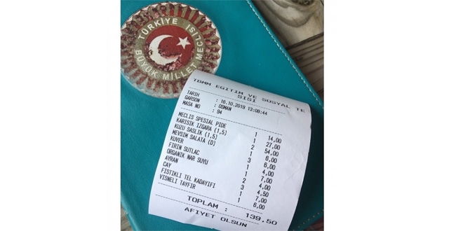 16 Ekim tarihli fişe göre; Meclis spesial pidenin fiyatı sadece 14 lira. 1,5 porsiyon karışık ızgara ise sadece 27 lira. Sütlaçların 4 liraya satıldığı Meclis lokantasında, vişneli tayfır ise 6 liradan satışı sunuluyor.