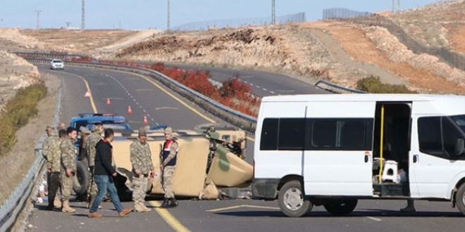 Şanlıurfa'da, askeri aracın devrilmesi sonucu meydana gelen kazada, 4 asker yaralandı.