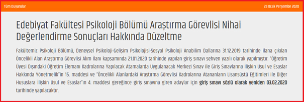 Bu hüküm çerçevesinde, Yükseköğretim Kurulu Başkanlığı tarafından üniversitelere 2019 Aralık ayı içerisinde tahsis edilen araştırma görevlisi kadrolarına alım süreci yükseköğretim kurumlarında devam etmektedir. Ancak, mezkür yönetmelikte sınavın diğer araştırma görevlisi alımlarının aksine sözlü olarak yapılacağı açık bir şekilde yazmasına rağmen bazı üniversitelerimizce çok basit hatalar yapılarak adaylar mağdur edilmektedir.