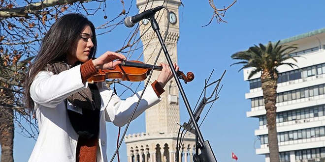 İzmir'in tarihi Konak Saat Kulesi önü ve Karşıyaka İskelesinde düzenli sokak konseri veren üniversite öğrencisi 20 yaşındaki Zeynep Tan, kemanından çıkan büyüleyici sesi daha fazla kişiye ulaştırmak istiyor.