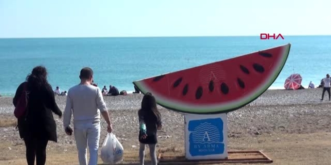 Türkiye'nin birçok bölgesine karlı ve soğuk hava hakimken turizm kenti Antalya'da hava sıcaklığı yaz mevsimini aratmıyor. Şubat ayında 21 dereceyi gören hava sıcaklığı nedeniyle kentte yaşayan yerli ve yabancı tatilciler ile kent sakinleri, güneşli ve sıcak havanın tadını dünyaca ünlü Konyaaltı Sahili'nde çıkardı. Bazı tatilciler kumsalda güneşlenirken bazıları ise sahil bandındaki çimlere uzanarak keyif sürdü. Güneşli havanın keyfini ise en çok çocuklar çıkardı. Deniz kenarında kıyafetleriyle birlikte suyla oynayan çocuklara, balık tutmak için olta atan balıkçılar eşlik etti.