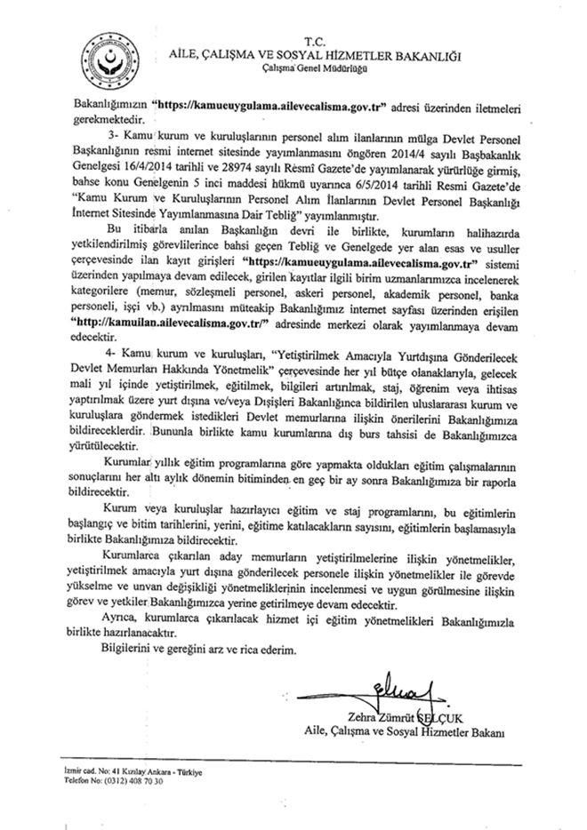 3- Kamu kurum ve kuruluşlarının personel alım ilanları Bakanlığın web sayfası üzerinden yayımlanmaya devam edecektir.