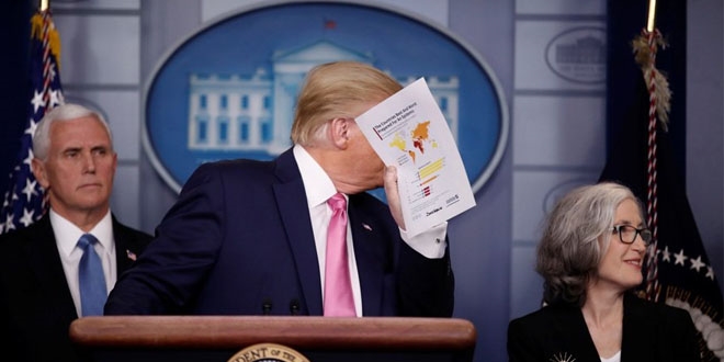 Çin'in Hubei eyaletindeki Wuhan kentinden çıktıktan çok kısa bir süre sonra küresel bir paniğe sebep olan corona virüsü hakkındaki açıklamaları harita üzerinden değerlendiren Trump'ın elinde tuttuğu kağıtlarda, "Bir salgına en hazır ve en hazırlıksız ülkeler" başlığı yer alıyor. Haritanın üzerinde, "2019'da bir hastalık/salgın olması durumunda en iyi müdahale edebilecek ve edemeyecek ülkeler" ifadesi yer alırken, haritada kırmızı renkte gösterilen bölgeler en hazırlıksız, açık sarı renkli ülke ve bölgeler ise en hazır ülkeler olarak gösteriliyor.