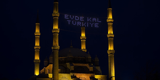 Selimiye Camisi'ne 'Evde Kal Türkiye' mahyası asıldı
