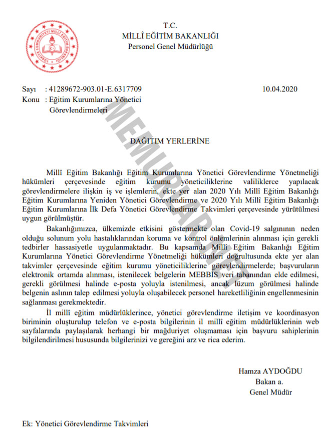 İşte Milli Eğitim Bakanlığı'nın yönetici görevlendirme takvimi