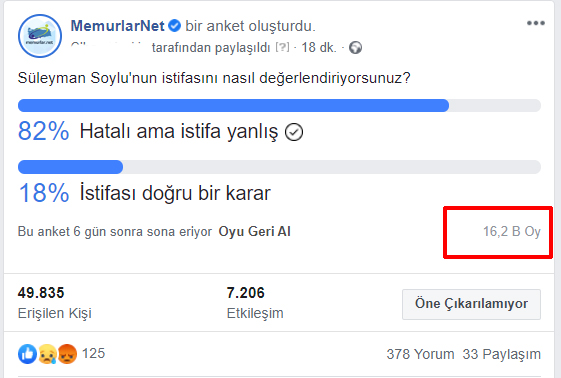 Ancak sosyal medyada uygulanan anketler, uygulanan hatalı olduğu kabul edilmekle birlikte Süleyman Soylu'nun istifasının yanlış olduğu belirtiliyor.