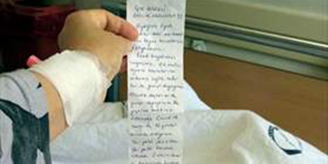 Çamlı, ardından hastane çalışanlarına bir teşekkür mektubu bıraktı.