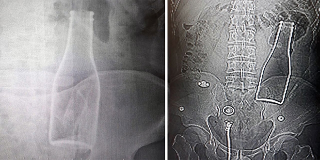 Bunun üzerine röntgen filmi çekilen gencin kalın bağırsağında şişe olduğu görüldü. Makattan girdiği belirlenen şişe, yaklaşık bir saat süren ameliyatla çıkarıldı.