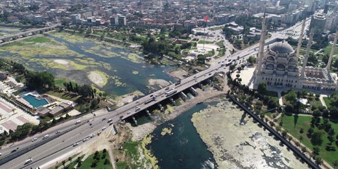 Adana'da, Girne Köprüsü'nün genişletme projesinde iskele çalışması nedeniyle Seyhan Nehri'nin suyu kesilince nehir yosun akınına uğradı. Su seviyesi azalınca yeşile bürünen nehri görenler, kötü koku ve yosunlar üzerindeki çöp birikintilerinden dolayı rahatsızlık duyduklarını belirtti.