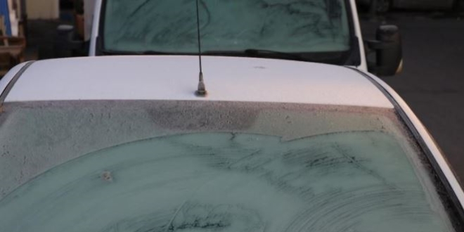 Soğuklar nedeniyle araç camlarının buz tuttuğu kentte, yol kenarlarında bulunan su birikintilerinin de donduğu görüldü.