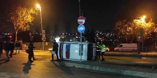 Eyüpsultan'da sürücüsünün kırmızı ışıkta durmayarak, geçtiği iddia edilen otomobil, kavşaktan karşı yola geçen polis otosuna çarptı. Çarpmanın etkisiyle polis otosu yan yattı. Kazada, otomobilin sürücüsü ile iki polis yaralanarak hastaneye kaldırıldı.
