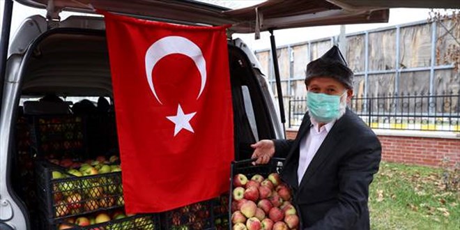 Yetiştirdiği elmaları 700 kilometreden hudut nöbeti tutan Mehmetçiğe getirdi