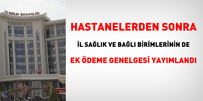 Sağlık Bakanlığı, hastanelerden sonra il sağlık ve bağlı birimlerinin ek ödeme genelgesini yayımladı