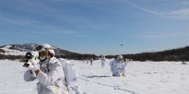 Özel kışlık kamuflajlarıyla ATAK helikopterleri desteğinde karla kaplı sarp, dik ve ağaçlık arazileri didik didik arayan Mehmetçik, mağara ve sığınaklara da girerek teröristlerin barınma alanlarını yok ediyor.