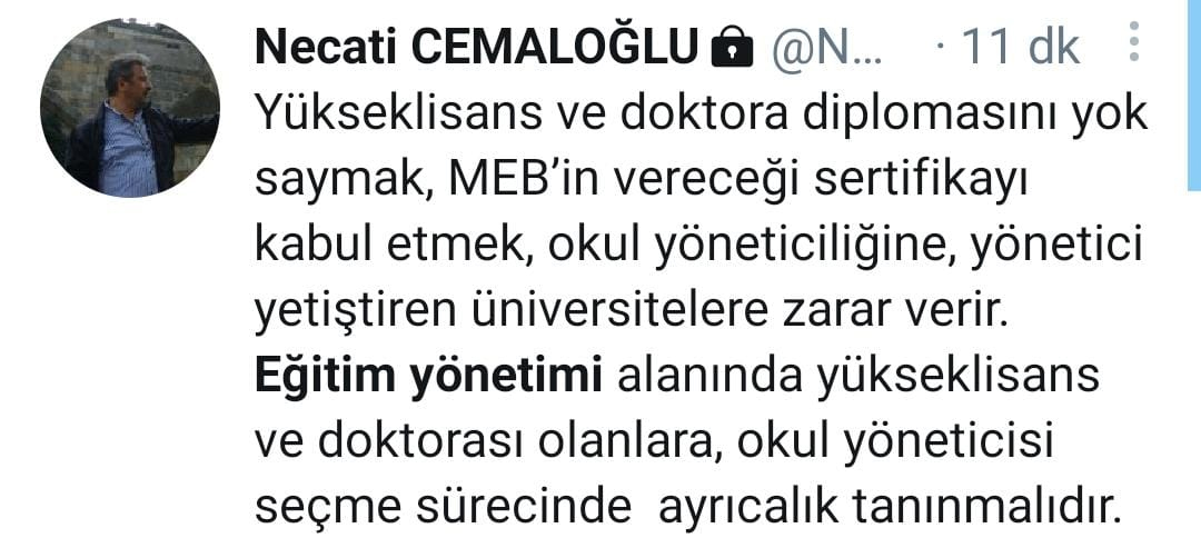 Yönetmelik düzenlenirken, eğitim yönetimi alanında tezli/tezsiz yüksek lisans veya doktora yapmış olanların neden muaf tutulmadığı anlaşılamamıştır.