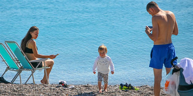Ailesiyle birlikte Rusya'dan tatile gelen 36 yaşındaki Max Kazakov, havanın muhteşem olduğunu söyledi. 1,5 yaşındaki kızı Alona ile birlikte kumsalda oyunlar oynayan Kazakov, "Eşim güneşin tadını çıkarıyor. Kımız kumsalda oynuyor. Hava çok güzel. Karşıda dağlı karları görüyorum, burada ise ayaklarımızı suya sokup güneş banyosu yapıyoruz. Bir hafta daha burada kalacağız, sonra ülkemize geri döneceğiz" dedi.