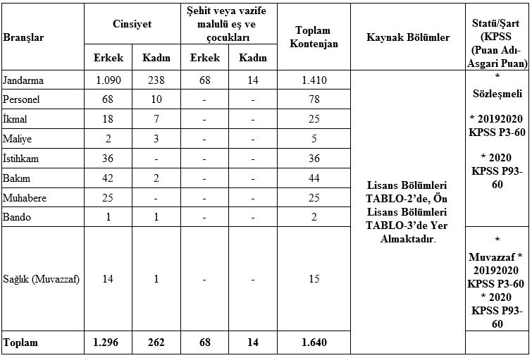 Jandarma Genel Kom. Sözleşmeli Astsubay alacak. Son başvuru tarihi 28 Mart 2021