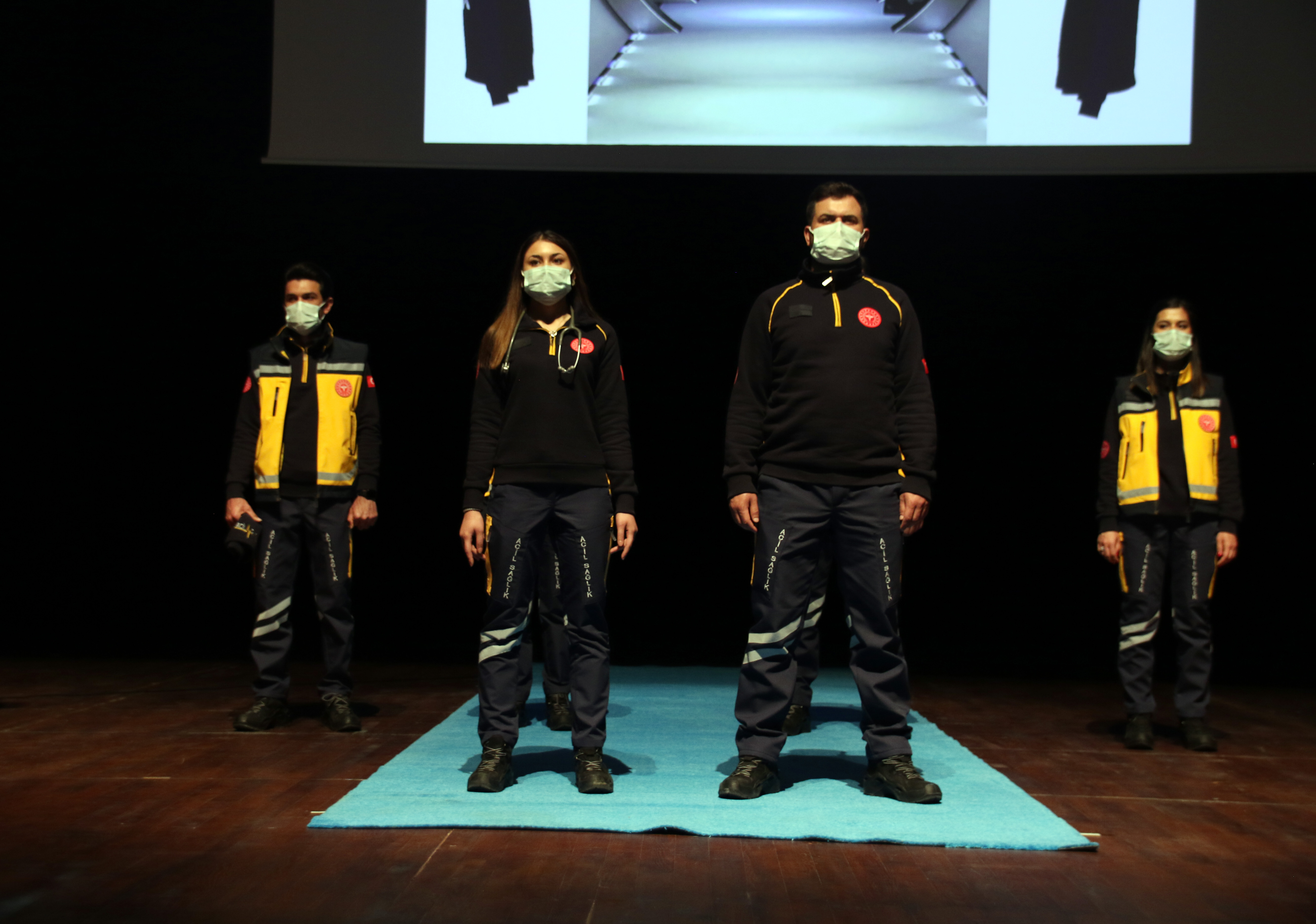 Sahnede yeni tasarım kıyafetleri tanıtan acil tıp teknisyenleri Deniz Zeybek ve Soner Dönmez ise kıyafetlerin çok kaliteli olduğunu kaydetti.