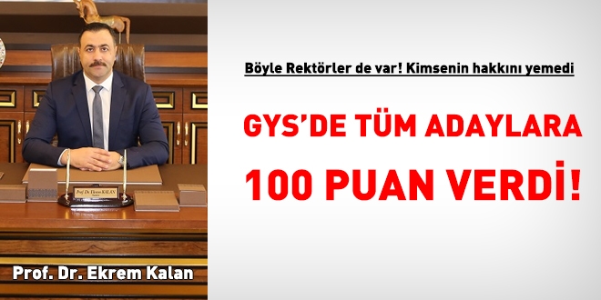 Karadeniz Teknik Üniversitesi de, daha önce başka üniversitelerimizin yaptığı gibi, örnek uygulamayı devam ettirerek, görevde yükselme ve unvan değişikliği sözlü sınavına giren adayların tümüne sözlüde 100 tam verdi.