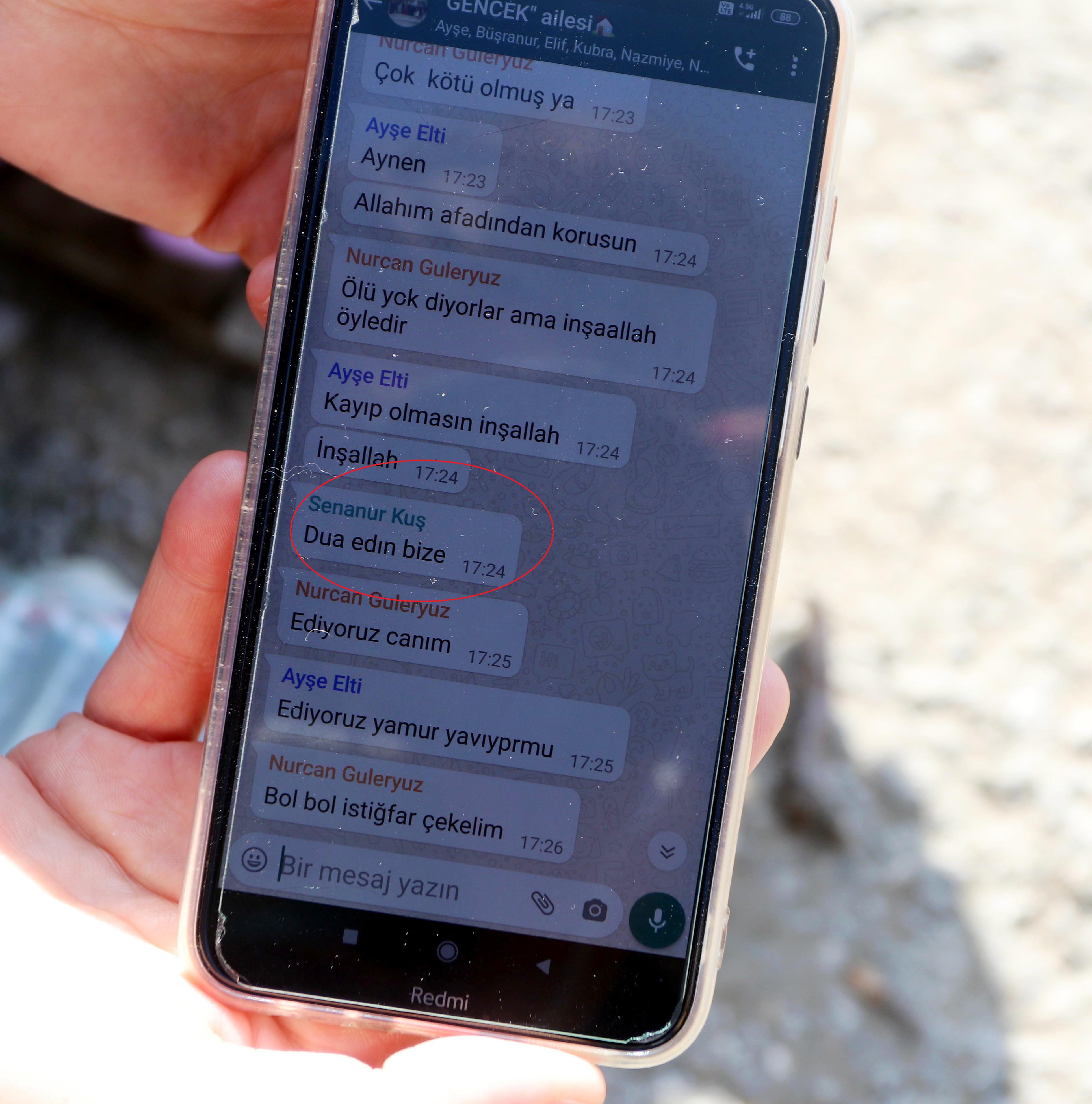 Kastamonu'da, selin vurduğu Bozkurt ilçesinde çöken Ölçer Apartmanı'ndaki Senanur Kuş'un (20), akrabalarının bulunduğu 'WhatsApp' grubuna 'Dua edin bize' mesajı gönderdiği ortaya çıktı