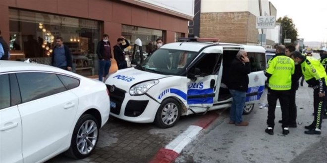 Bursa'nın İnegöl ilçesinde, otomobil ile polis otosunun çarpışması sonucu 2 polis memuru ile otomobil sürücüsü yaralandı.
