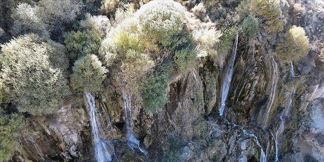 Sonbahar mevsiminin yaşandığı bugünlerde de hem yüksekten dökülen suları hem de çevresindeki farklı tonlara bürünen bitki örtüsüyle ilgi gören şelalenin çevresindeki ağaçlar şu sıralar sarı, turuncu ve yeşilin farklı tonlarına büründü.